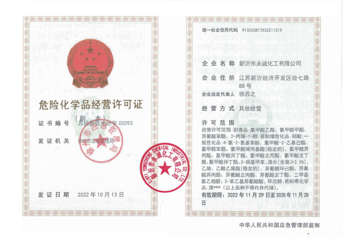 ■ 郵 箱:sales@yongchengchem.com | ■ 網 址:www.yongchengchem.com |